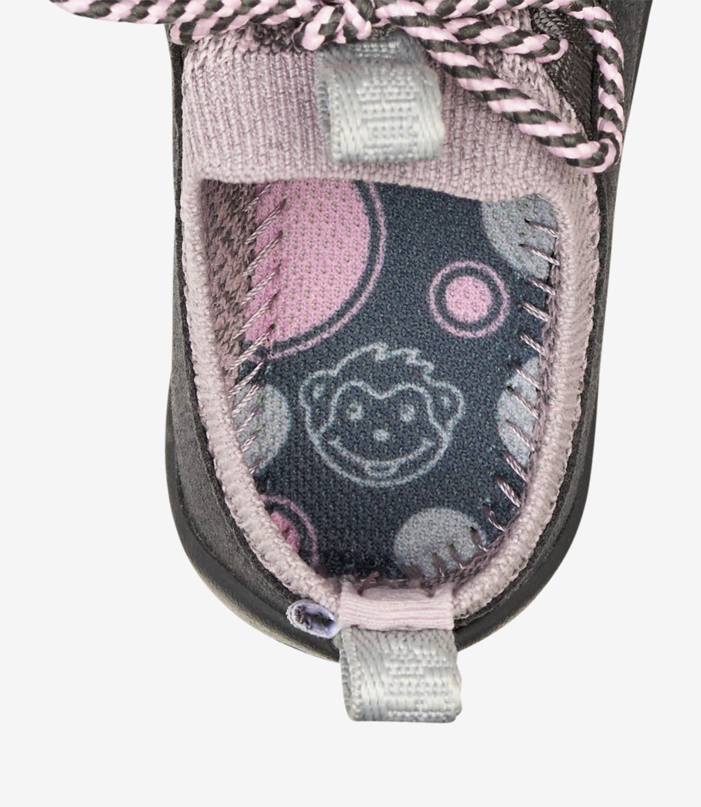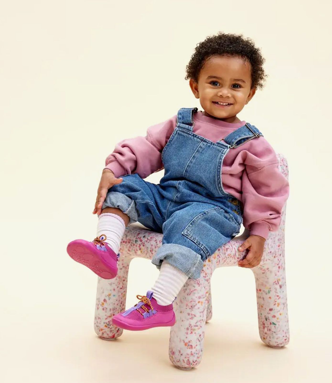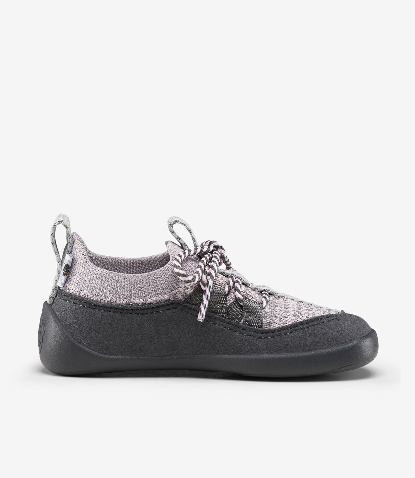 Den bløde knit-overdel, lavet af en blanding af polyester og microfiber polyester, omslutter fødderne som en anden hud. Den er åndbar, elastisk og glat mod sart babyhud — perfekt til små, der lærer balance og bevægelse. Underneden giver en holdbar sål af naturlig og syntetisk gummi beskyttelse uden stivhed, så hver tå og led kan bevæge sig frit for naturlig udvikling.