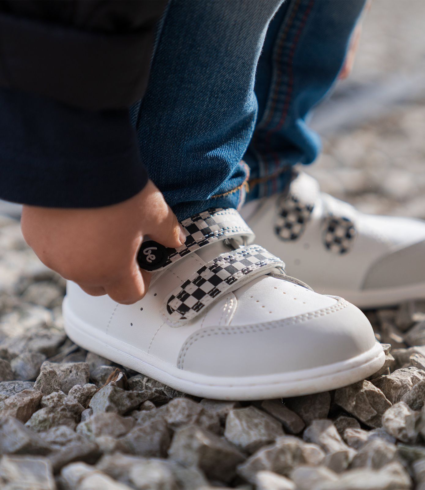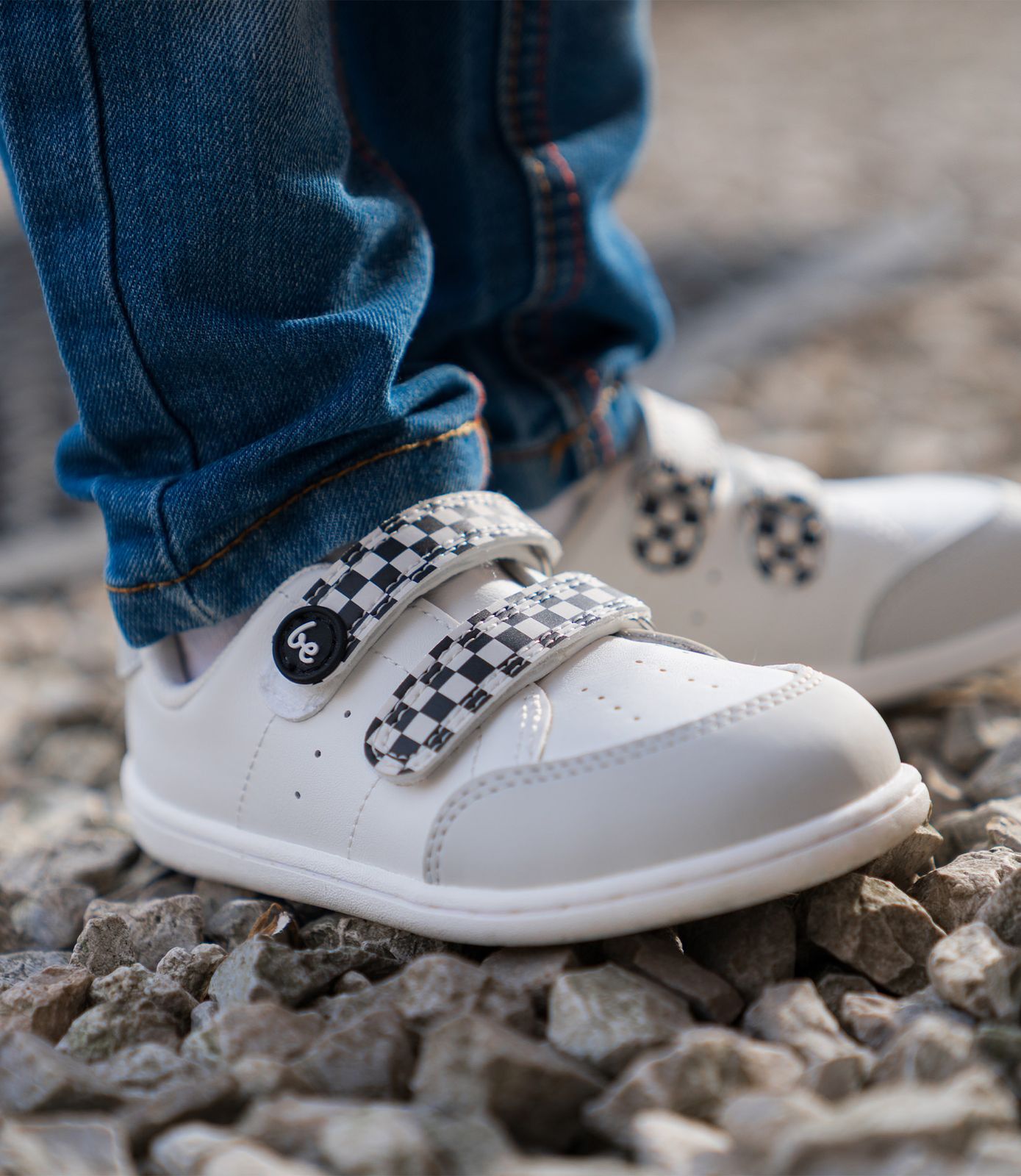 Energise har en perforeret overdel i bæredygtigt læder og syntetisk læder, der sikrer åndbarhed og holder små fødder friske, selv på lange legedage. To velcrolukninger og små løkker gør det nemt at tage skoene på, mens den fleksible PebbleComfort Kids-sål fremmer stabilitet og naturlig gang. Perfekt til skole, legeplads og eventyr, så disse sneakers følger med barnets aktive livsstil.